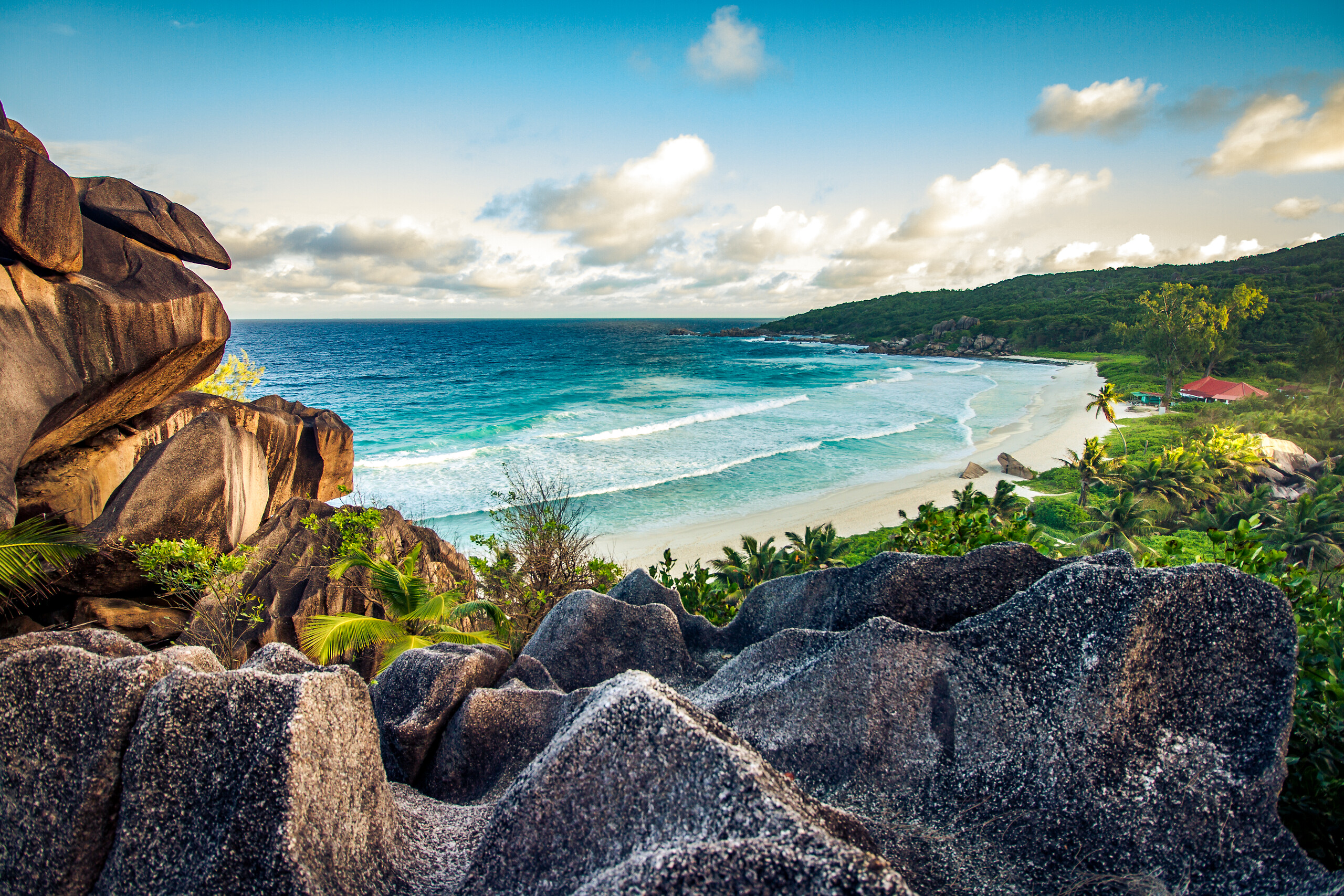 Durante un soggiorno alle Seychelles, l'isola di Mahé è un must. Potrai passeggiare per le strade di Victoria, la capitale dell'arcipelago. L'atmosfera tropicale della città darà alla tua vacanza alle Isole Seychelles un tocco speciale. Continua l'esperienza avventurandoti nelle verdi e lussureggianti terre dell'isola di Mahé per scoprire il Parco Nazionale Morne Seychellois. Nelle Seychelles, le escursioni in questo paradiso della natura sono una miriade. Che si tratti di una passeggiata mattutina o di una gita di un giorno, il tuo tour attraverso la giungla tropicale ti riserva molte sorprese. Prendi il Sentiero di Copolia per immergerti in questa riserva che rivela una biodiversità unica. Piante carnivore, alberi di cannella, alberi della gomma e palme da cocco apriranno la strada alla vetta che culmina a 600 metri. Poi prenditi il tempo di ammirare le isole di Praslin e La Digue che troneggiano in lontananza e gli imponenti fianchi della Morne Seychellois, il punto più alto dell'isola di Mahé. Tra le altre escursioni di maggior interesse alle Seychelles, non puoi non provare il cammino dei 3 fratelli. Accompagnati dal canto del bulbul, emblematico passeriforme delle isole Seychelles, si raggiunge rapidamente la cima situata a 300 metri e il belvedere che offre un magnifico panorama sulle acque turchesi del Parco Marino di Sainte-Anne.